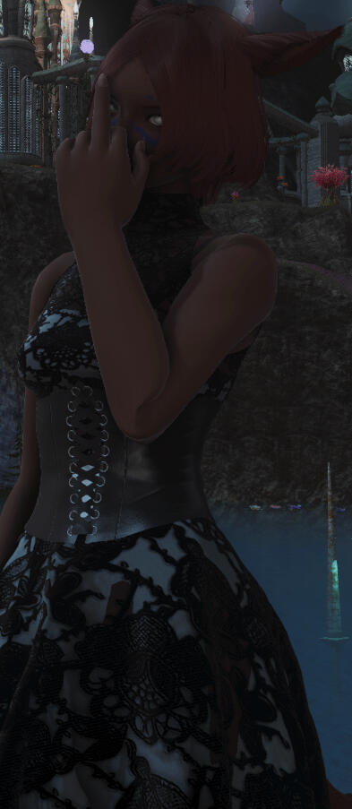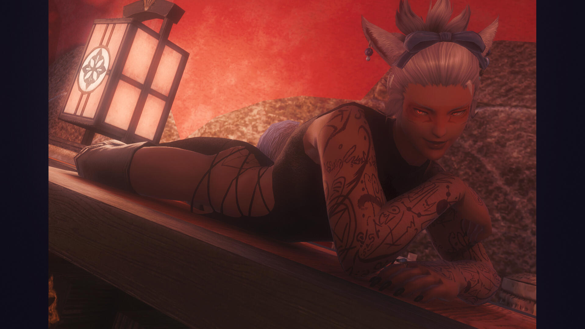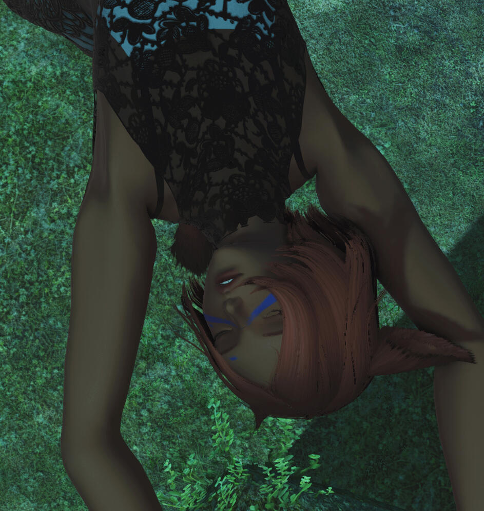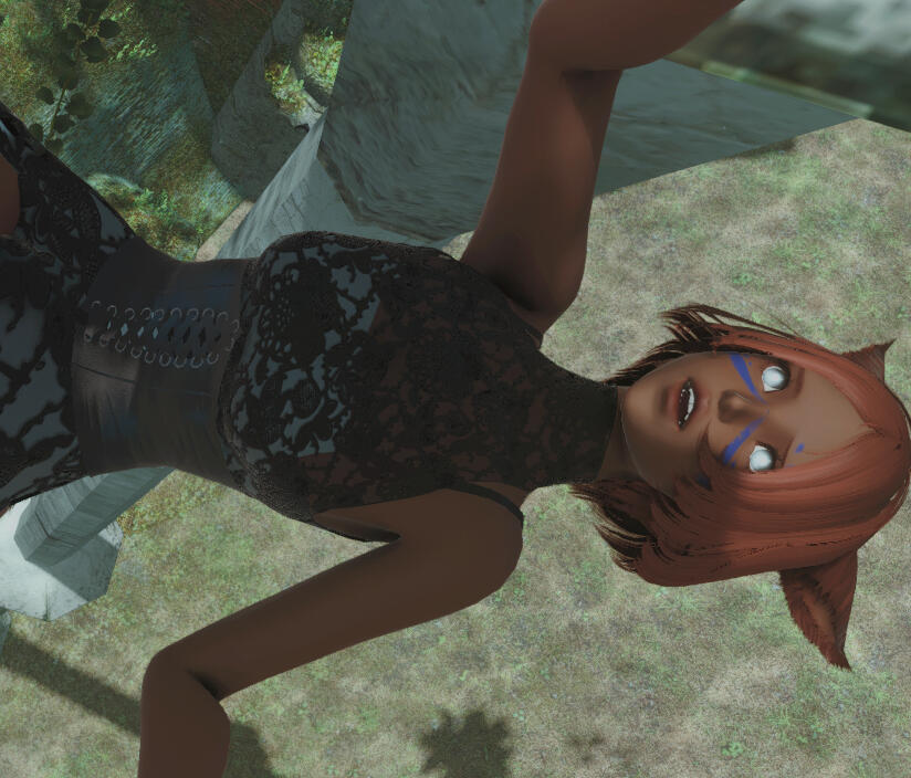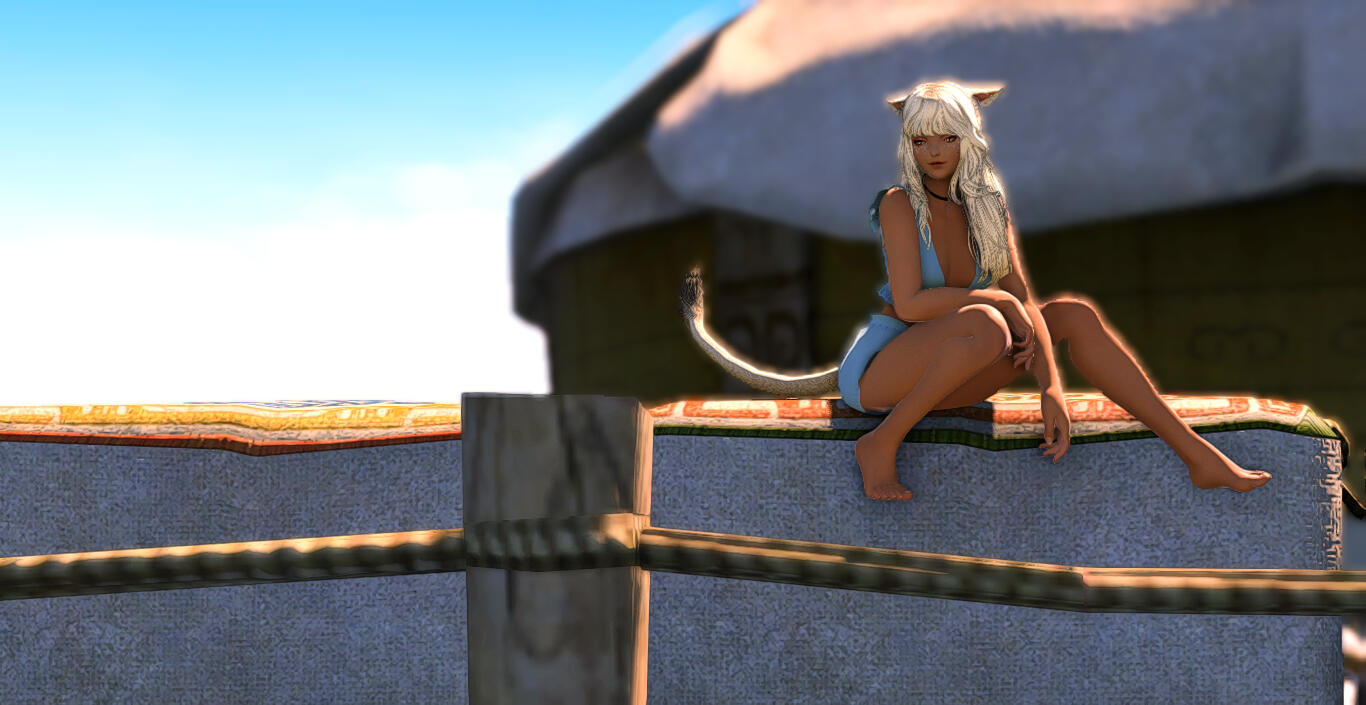 ❥ It takes only a moment to notice that this Tia is lacking in the typical bushy tail that most Miqo'te sport. How might that have happened?